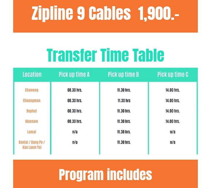 The most exciting experience on a zipline in the amidst of nature.  Acrobatic fly over waterfalls Admire the beautiful, breathtaking sea views of Koh Samui