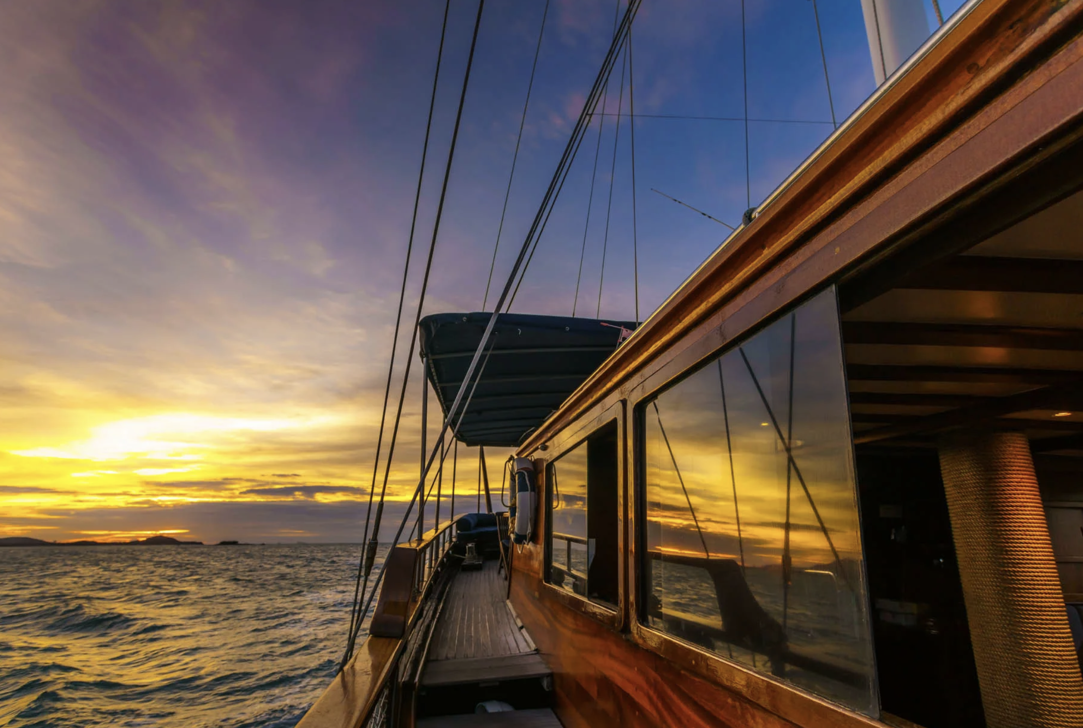 ขณะที่เราแล่นเรือไป คุณสามารถสำรวจเรือยอชท์ได้ตามใจชอบ คุณสามารถเดินไปรอบๆ บนดาดฟ้า ผ่อนคลายในจุดร่มเงาหลายแห่งบนเรือ และเพียงแค่ชมทิวทัศน์ที่งดงามที่ต้อนรับคุณขณะที่เรามุ่งหน้าไปยังจุดหมายปลายทางของเรา